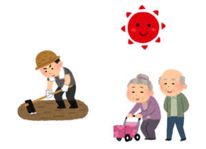 ※夏場は熱中症の危険があるので昼間は控えて、朝・有の涼しい時間に行いましょう。毎日の散歩や、畑仕事もお勧めです。(ただし、無理や、やりすぎは注意ですよ)