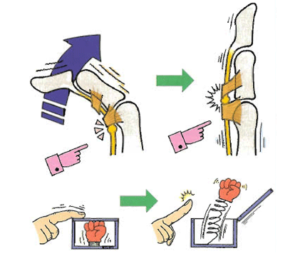 指の曲げ伸ばしの際に引っかかりが生じスムーズな曲げ伸ばしができなくなります。